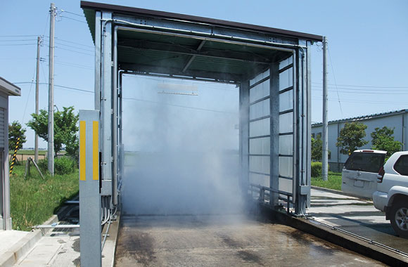 菌の付着しやすい車両側面とタイヤへの殺菌